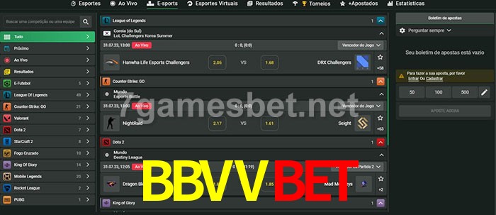 O BBVVbet oferece uma grande seleção de opções de apostas em e-sports com probabilidades competitivas